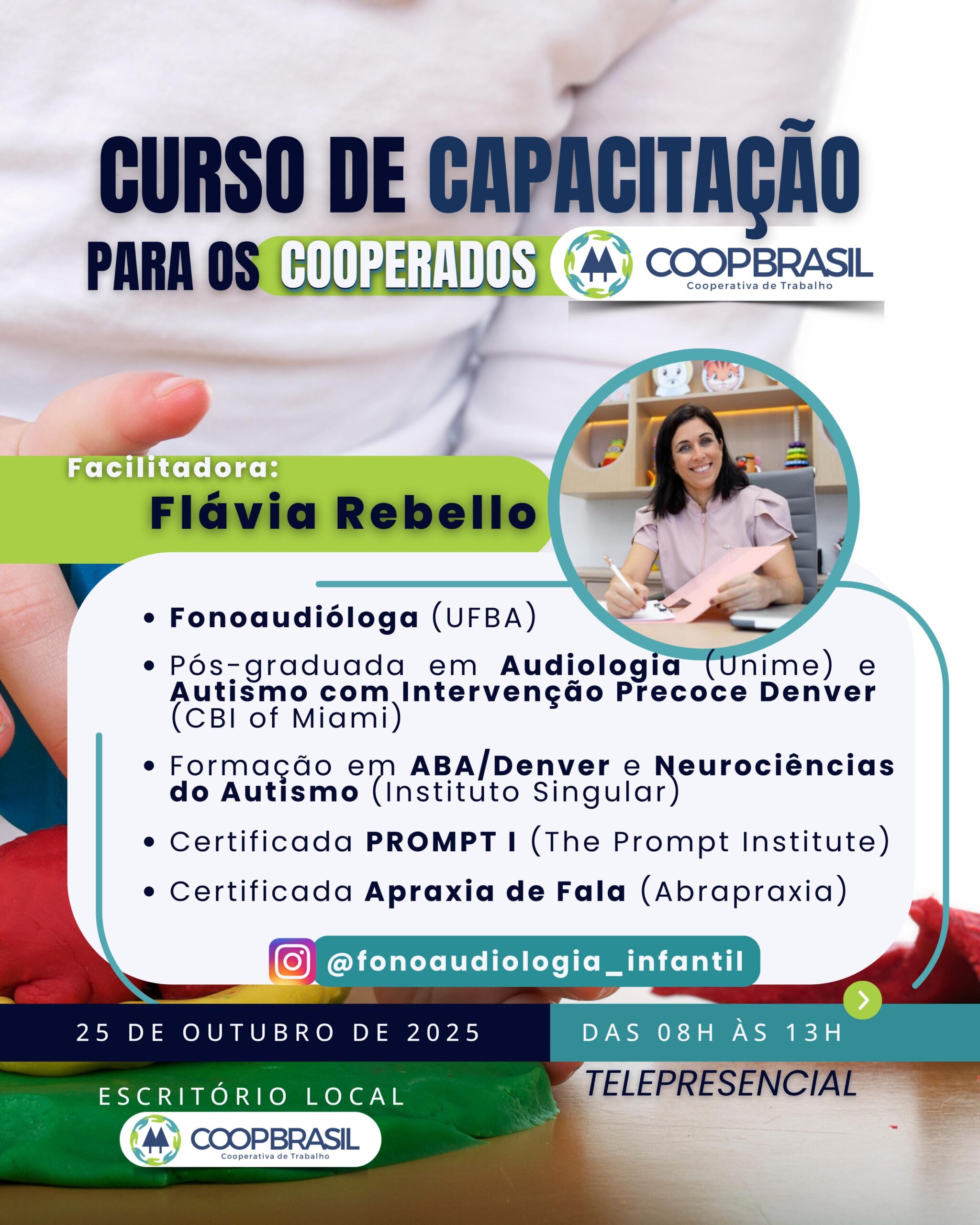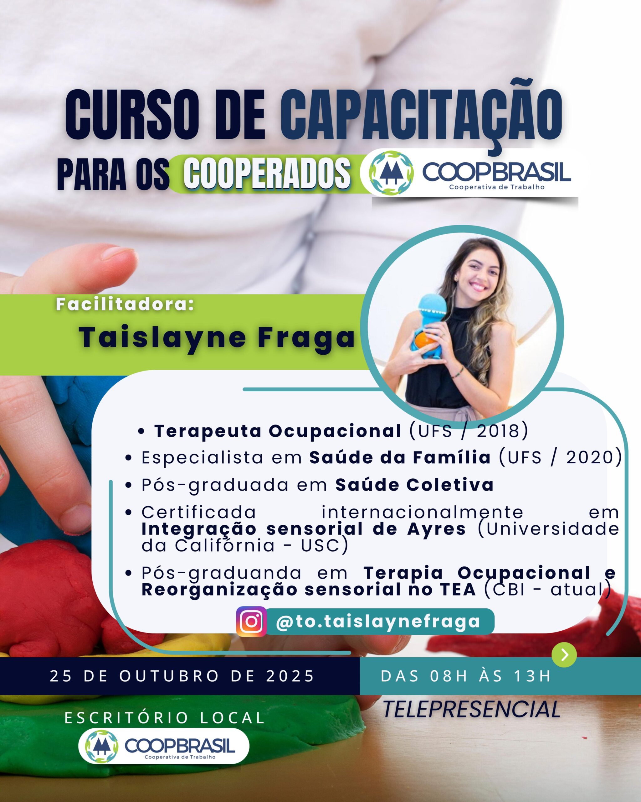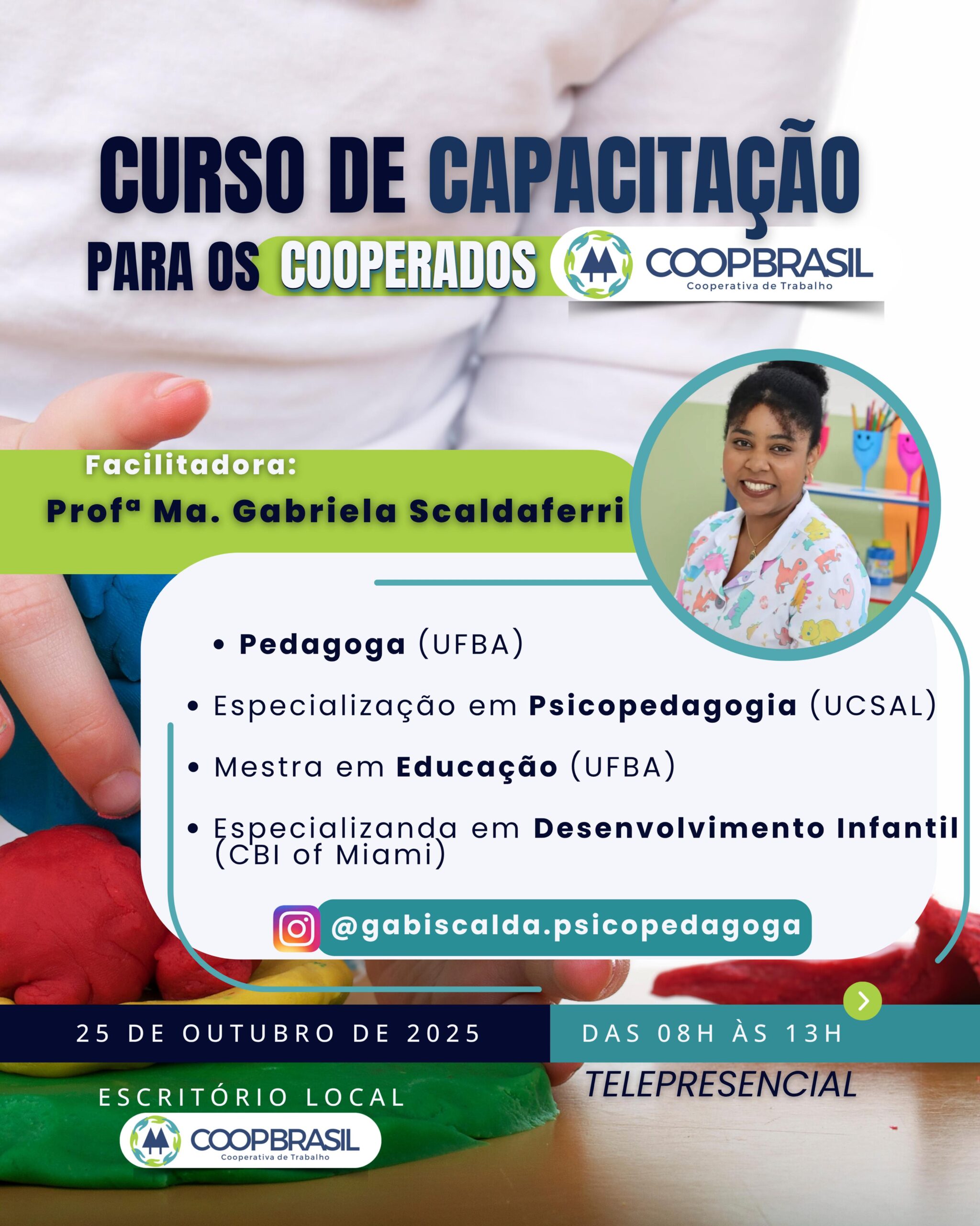 No dia 25 de outubro de 2025 (sábado), das 08h às 13h, acontece o curso “Cuidar, Brincar e Ensinar: Capacitação de Educadores e Auxiliares para o Desenvolvimento Infantil”, realizado de forma telepresencial pela COOPBRASIL.